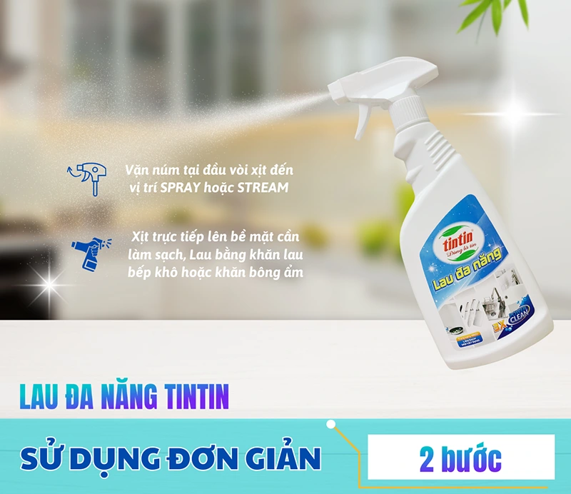 Với thành phần chính được chiết xuất từ các nguyên liệu an toàn, sản phẩm Lau đa năng TinTin đem đến hiệu quả làm sạch tuyệt vời, đánh bay cả vết bẩn cứng đầu. Chỉ với vài thao tác vô cùng đơn giản và nhanh chóng. Bạn đã làm sạch mà không cần mang bao tay cao su nữa. Với Lau đa năng TinTin căn nhà của trở nên xanh hơn – sạch hơn – cảm thấy thư thái hơn.