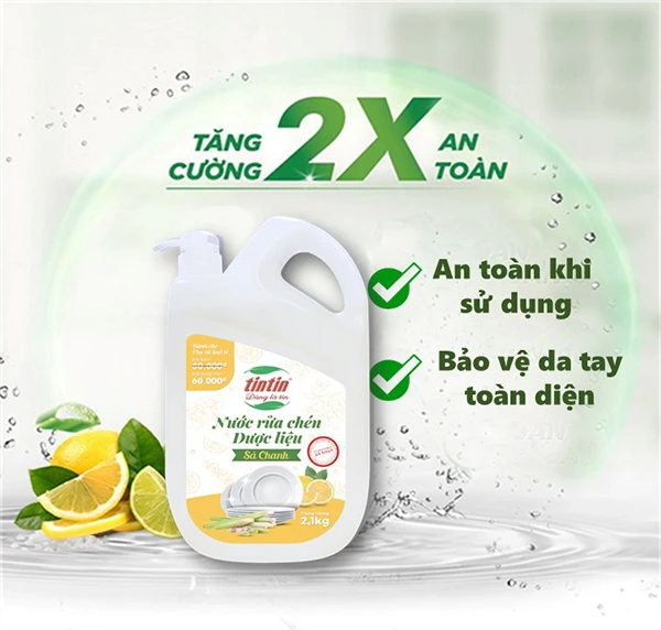 - Lựa chọn loại nước rửa bát an toàn: Nước rửa chén dược liệu tintin được sản xuất từ các enzim tự nhiên. Qua quá trình ngâm ủ các loại thảo dược như trà xanh, vỏ chanh, lá sả, nha đam, cỏ ngũ sắc, quả bồ hòn,… Có hàm lượng chất kháng khuẩn tự nhiên cao với các chất hoạt động bề mặt từ dầu dừa, dầu cọ,… Giúp làm sạch bát đĩa một cách nhanh chóng, an toàn, thân thiện với môi trường và người sử dụng.
